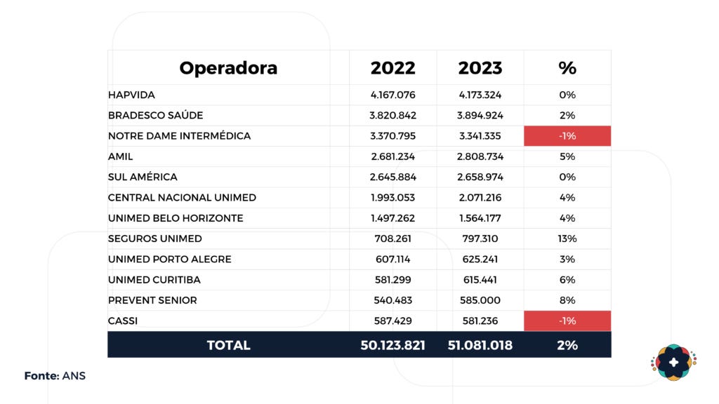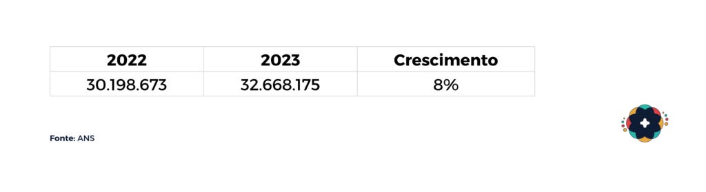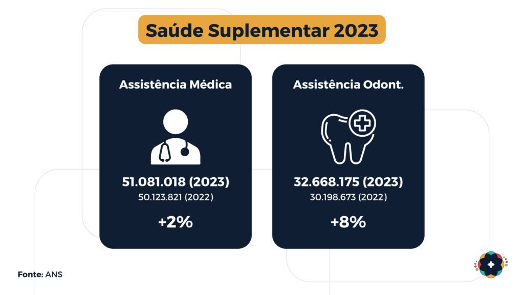 Em 2023, o crescimento do número foi para 2%. O resultado foi um crescimento menor e o registro da marca de 51 milhões de usuários na saúde suplementar no Brasil. Em relação a população. o país tem atualmente uma taxa de cobertura dos planos de saúde privados de 25% da população.